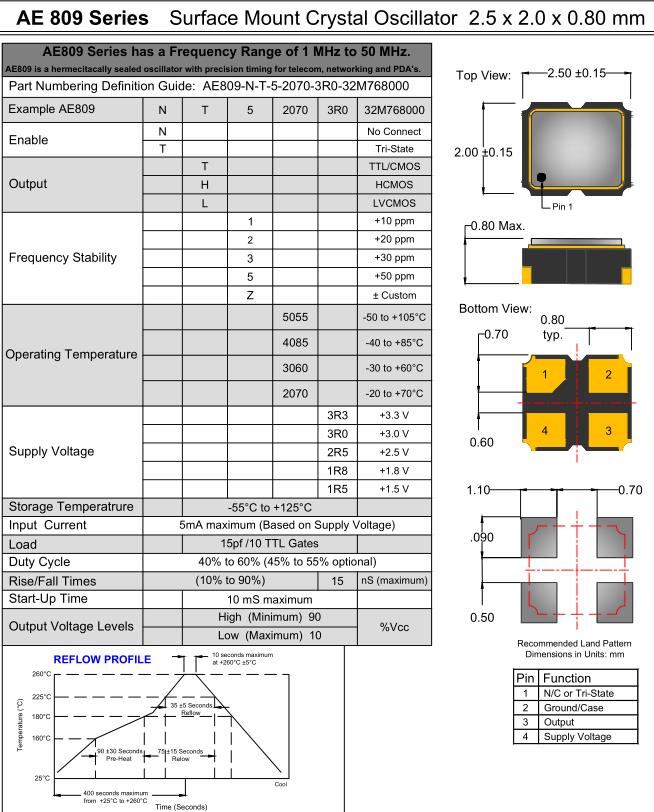 Anderson晶振,AE809晶振,AE809-NT520703R0-32M768000晶振