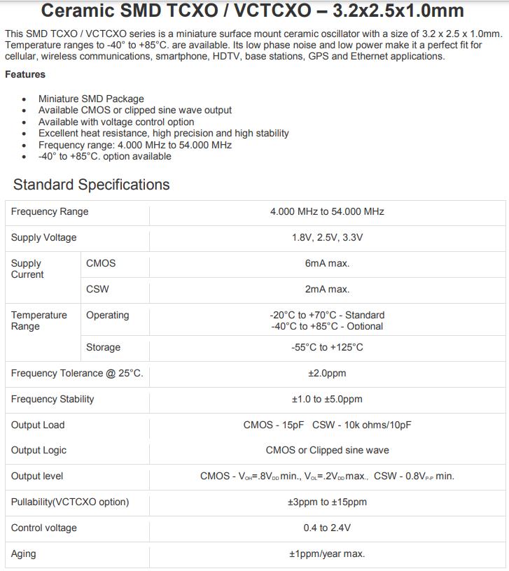 | Pullability(VCTCXO option) | ±3ppm to ±15ppm | |