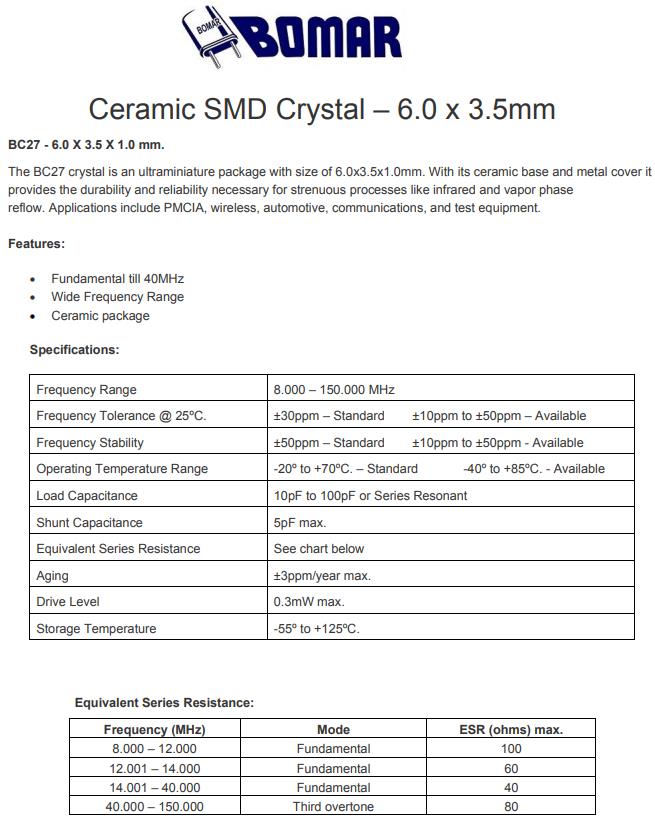 Bomar晶振,BC27晶振,BC27EFD120-10.000000晶振