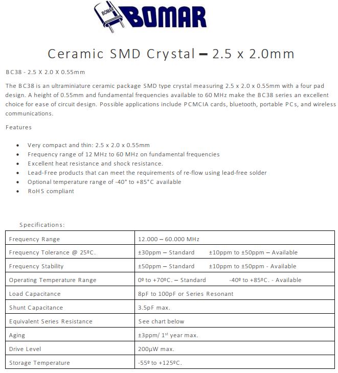 | Frequency Stability | ±50ppm – Standard ±10ppm to ±50ppm - Available |