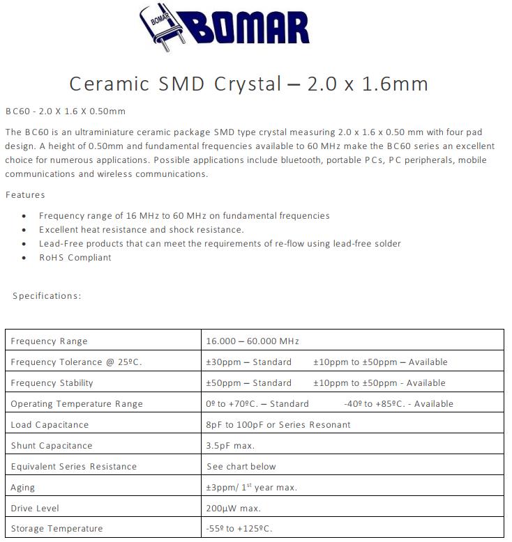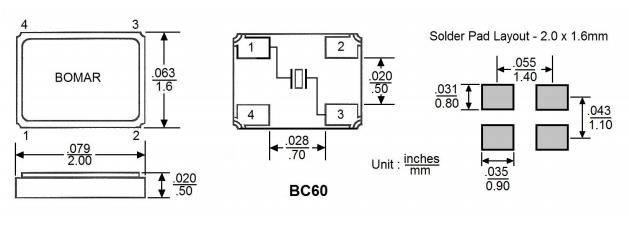 Bomar晶振,BC60晶振,BC60EFD108-20.000000晶振