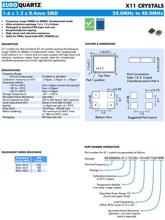 | Euroquartz晶振規格 | 單位 | X11晶振頻率范圍 | 石英晶振基本條件 |