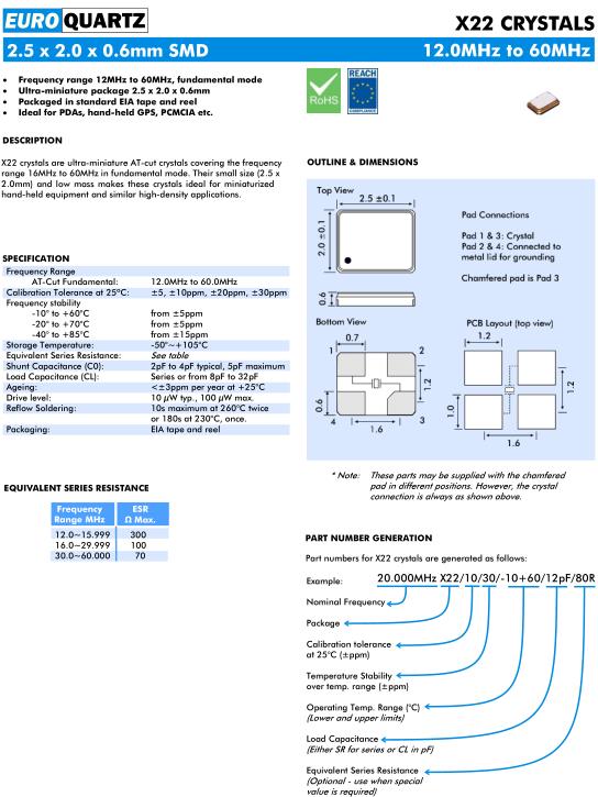 | Euroquartz晶振規格 | 單位 | X22晶振頻率范圍 | 石英晶振基本條件 |