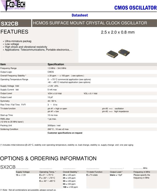 FCD-Tech晶振,SX2CB晶振,SX2CB-15K25E15pF-16.000MHz晶振