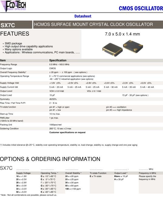 FCD-Tech晶振,SX7C晶振,SX7C-18K20EH-24.000MHz晶振