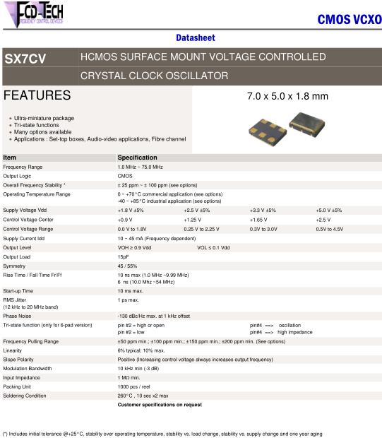 FCD-Tech晶振,SX7CV晶振,SX7CV-33F25F6P50-24.000MHz晶振