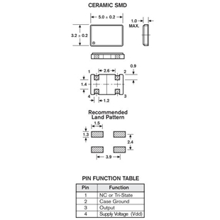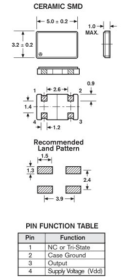 No Connect (Std.) Tri-State (option T) VIH: 2.2 V or Open Enables Output VIL: 0.8 V Disables Output Output Disable/Enable Time: 100 nS max.  |