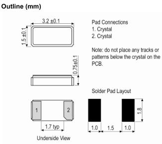| Ageing | ±3ppm max in 1st year @ 25°C ±3°C |