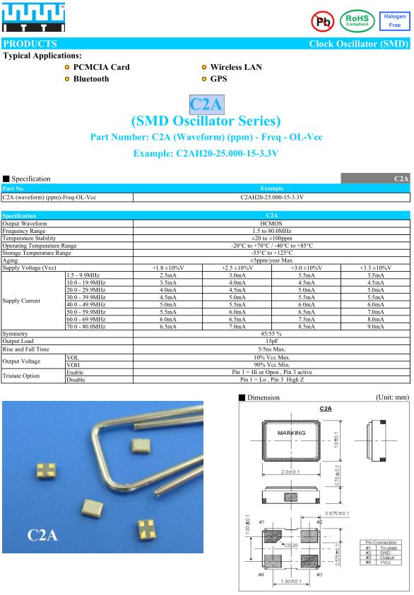 ITTI晶振,C2A晶振,C2AH20-25.000-15-3.3V晶振