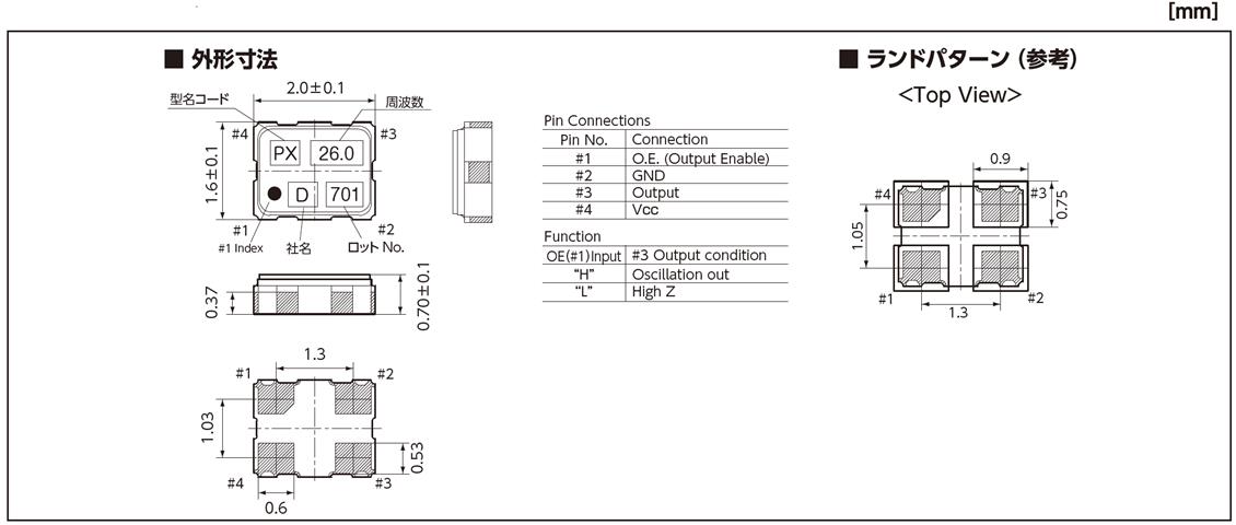 | 消費電流 | +3.0mA max. (+3.3V, 26MHz) |