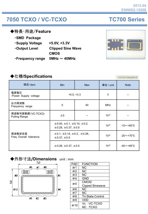 NAKA晶振,TC700晶振,溫補晶振
