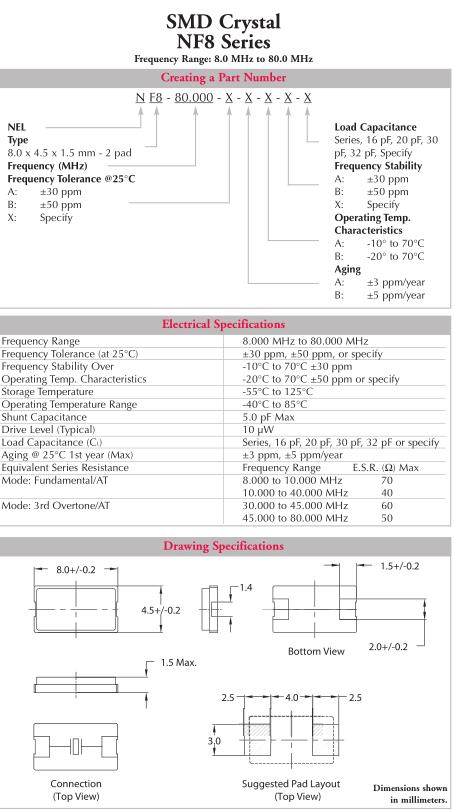 NEL晶振,NF8晶振,NF8-80.000-AABA-20pF晶振