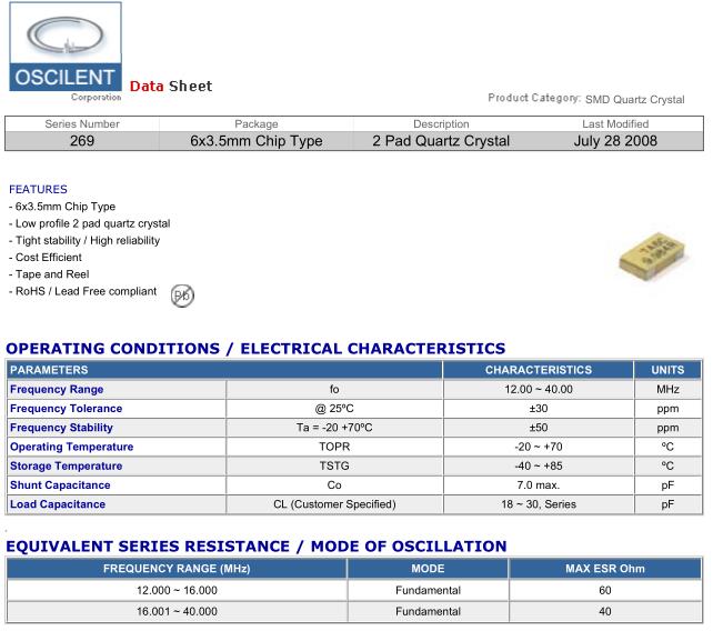 奧斯康利晶振,269晶振,269-12.0M-20-S-TR晶振