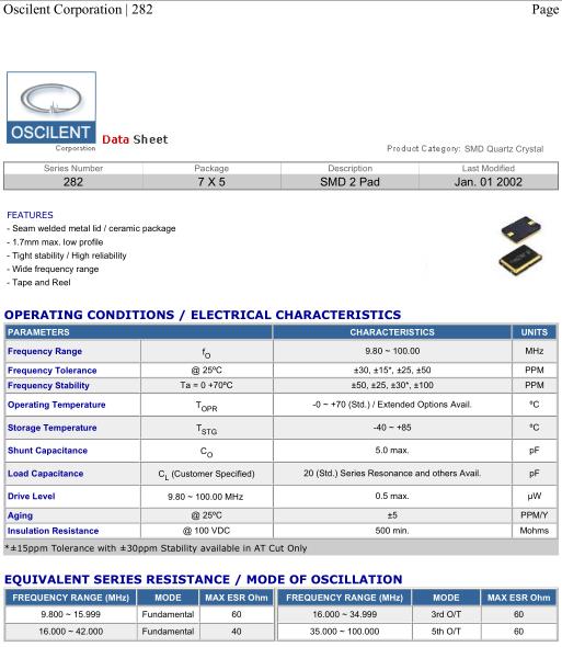 Oscilent晶振,282晶振,282-12.0M-SR-50-N-U-TR晶振