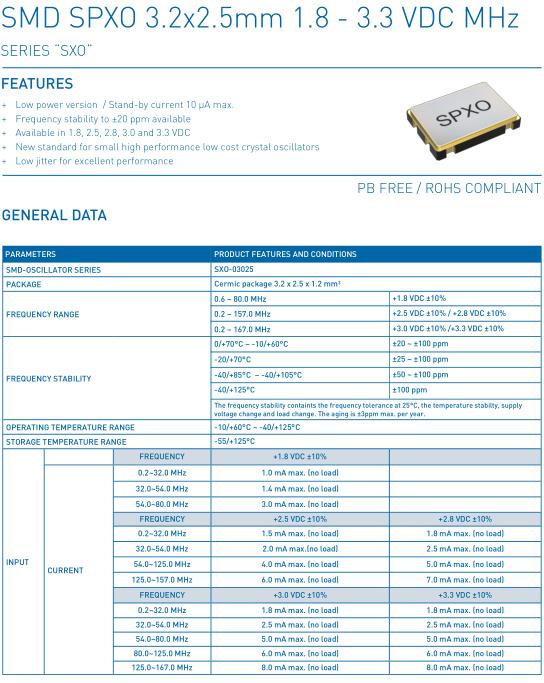 PETERMANN晶振,SXO-03025晶振,SXO18-03025-SE20M-27.000MHz-T晶振,小型SMD有源晶振,從最初超大體積到現(xiàn)在的7050mm,6035mm,5032mm,3225mm,2520mm體積,有著翻天覆地的改變,體積的變小也使產品帶來了更高的穩(wěn)定性能,接縫密封石英晶體振蕩器,精度高,覆蓋頻率范圍寬的特點,SMD高速自動安裝和高溫回流焊設計,Optionable待機輸出三態(tài)輸出功能,電源電壓范圍:1.8V~5V,高穩(wěn)定性,低抖動,低功耗,主要應用領域:無線通訊,高端智能手機,平板筆記本WLAN,藍牙,數(shù)碼相機,DSL和其他IT產品的晶振應用,三態(tài)功能,PC和LCDM等高端數(shù)碼領域,符合RoHS/無鉛.我們在頻率控制產品(FCP)的開發(fā)、生產和銷售方面積累了豐富的專業(yè)知識。運用我們長期的經驗,我們最大限度地減少了終端系統(tǒng)設計,同時縮短了上市時間。結合我們深入的技術服務(設計、模擬、測試和驗證),我們通過提供正確的解決方案緊急解決客戶的問題。您可以信賴我們可靠的優(yōu)質供應商的經驗,他們致力于提供最具創(chuàng)新性的頻率控制組件。