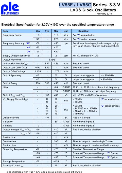 Pletronics晶振,LV55F晶振,LV55G晶振,有源六腳晶振