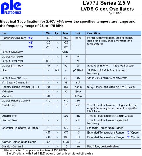 Pletronics晶振,LV77J晶振,LVDS晶振