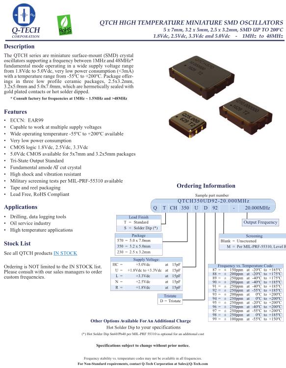Q-Tech晶振,QTCH230晶振,QTCH350UD92-20.000MHz晶振