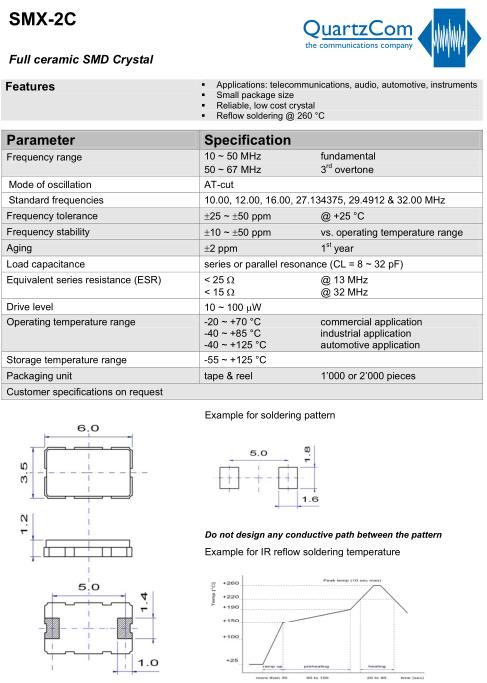 QuartzCom晶振,SMX-2C晶振,無(wú)鉛晶振