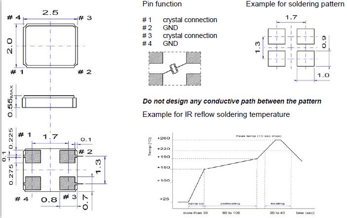 將晶振加熱包裝材料至+150°C以上會破壞產(chǎn)品特性或損害產(chǎn)品.如需在+150°C以上焊接石英晶振,建議使用SMD晶振產(chǎn)品.在下列回流條件下,對石英晶振產(chǎn)品甚至SMD貼片晶振使用更高溫度,會破壞晶振特性.建議使用下列配置情況的回流條件.安裝這些貼片晶振之前,應(yīng)檢查焊接溫度和時間.同時,在安裝條件更改的情況下,請再次進行檢查.如果需要焊接的晶振產(chǎn)品在下列配置條件下進行焊接,請聯(lián)系我們以獲取耐熱的相關(guān)信息.