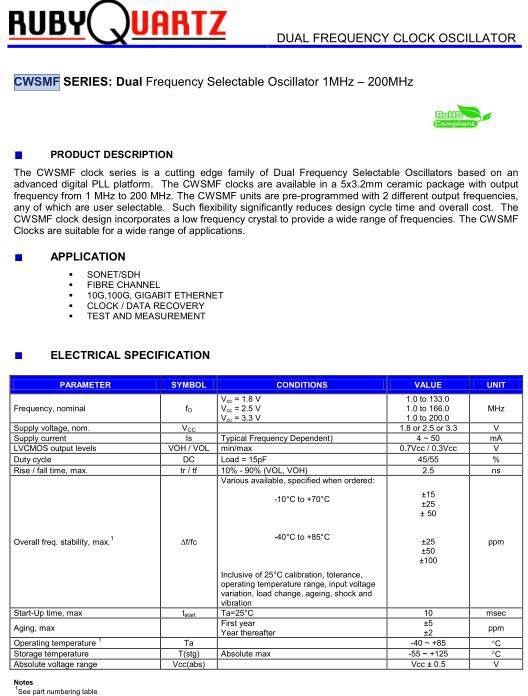 Rubyquartz晶振-Rubyquartz Crystal是領先的頻率元件供應商之一,主要提供市場盧柏貼片晶振,有源晶振,溫補晶振,石英晶體等產品.盧柏晶振,CWSMF晶振,CWSMF243TSH0-16.000晶振.