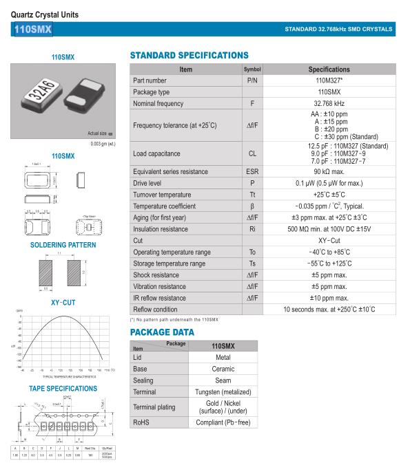 SMI晶振,110SMX晶振,超小型晶振,貼片表晶32.768K系列具有超小型,薄型,質(zhì)地輕的表面貼片音叉型石英晶體振蕩器,晶振產(chǎn)品本身具備優(yōu)良的耐熱性,耐環(huán)境特性,在辦公自動(dòng)化,家電領(lǐng)域,移動(dòng)通信領(lǐng)域可發(fā)揮優(yōu)良的電氣特性,符合無(wú)鉛標(biāo)準(zhǔn),滿足無(wú)鉛焊接的回流溫度曲線要求,金屬外殼的石英晶振使得產(chǎn)品在封裝時(shí)能發(fā)揮比陶瓷晶振外殼更好的耐沖擊性能.SMI晶振公司電子社會(huì)做出貢獻(xiàn),在穩(wěn)步的研究和努力的基礎(chǔ)上,快速開(kāi)發(fā)先進(jìn)的水晶產(chǎn)品。