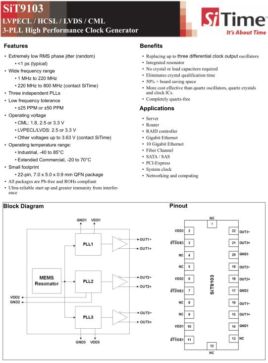 SiTime Crystal是MegaChips公司的獨立子公司,主要以生產高精度石英晶體振蕩器,可編程晶體振蕩器,MEMS晶振等器件為主.SiTime晶振主要以生產MEMS晶振,VCXO晶振等頻率元件.SiTime晶振,SiT9103晶振,LVDS輸出晶振.