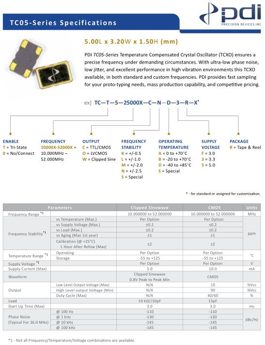 Wi2Wi晶振,TC05晶振,TCT525000XCND3RX晶振