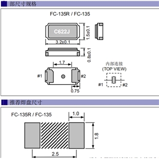 "FC-135R 32.7680KF-A3",所有石英晶體振蕩器和實時時鐘模塊都以IC形式提供.